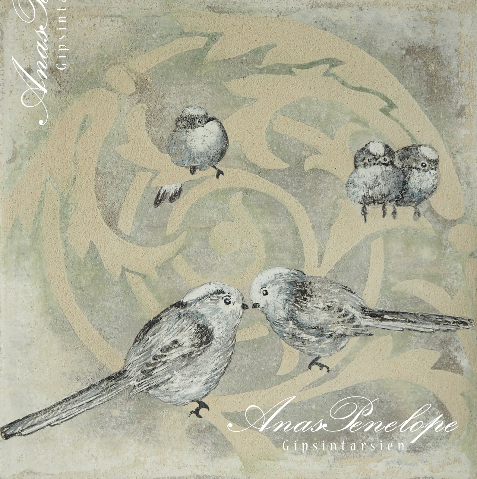 Das Handwerk hat mich gefunden, nicht ich es. Dann hat eine Freundin es Gipsintarsien genannt, was ich mir da ausgedacht habe. Schlussendlich habe ich so etwas dann sogar unter diesem Namen im Internet gefunden. Eine seltene Angelegenheit. Und ich stellte fest, dass ich sie verfeinert habe. Stolz!!!